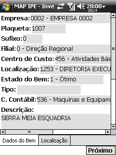 - Consulta: simplesmente mostra o cadastro da plaqueta lida. Não inventaria o bem.